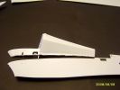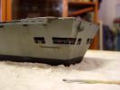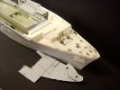Am Rumpf, speziell der Backbordseite, musste ich ebenfalls Änderungen vornehmen. Den Ausleger im Bootsbereich nahm ich weg und änderte die Öffnungen ab, um eine Barkasse anstatt des Dinghis unterzubringen.