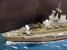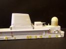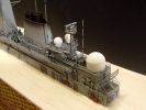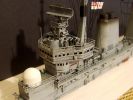 Der Bug des Schiffes musste komplett geändert werden. Dazu entfernte ich sämtliche Details inklusive des Ski Jump und baute alles aus 0,5 mm Plastikkarte neu auf. Den Ski Jump musste ich neu bauen, wobei ich lediglich den geschwungenen Teil der Bausatz-Startrampe verwenden konnte. Der Strahlabweiser und der Sea Dart-Starter wurden selbst gebaut, wozu ich Teile eines alten Motherboards, Kunststoffstückchen und Pillenkapseln verwendete.