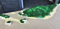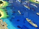 Als das nach ein paar Korrekturen zu meiner Zufriedenheit erledigt war, kamen die Tiefwasserzonen mit kräftigem Blau dran. Danach malte ich die Seegrasfelder sowie einige dunklere und hellere Blaustellen auf. Ein Aufstellen der Schiffsmodelle ergab ein für mich sehr befriedigendes Bild: so konnte ich es lassen !
